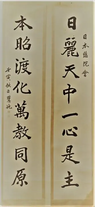 本年農歴壬寅十月一日、2022年10月25日(火)に東京総院は六十周年を迎えるにあたり、総院が創立するまでの経緯をまとめています。今回は、総院の扁額「誠正和平」が完成する経緯です。